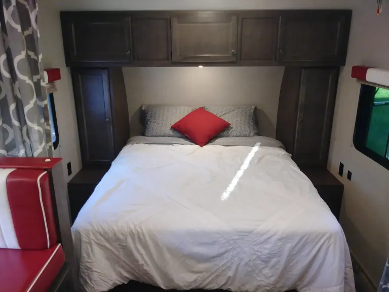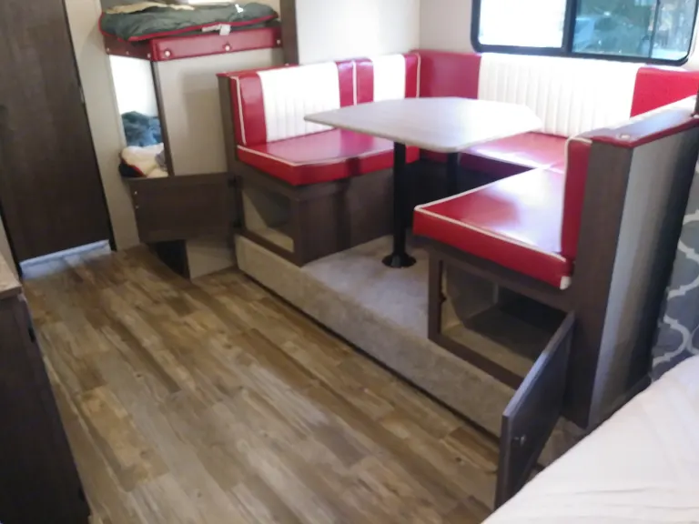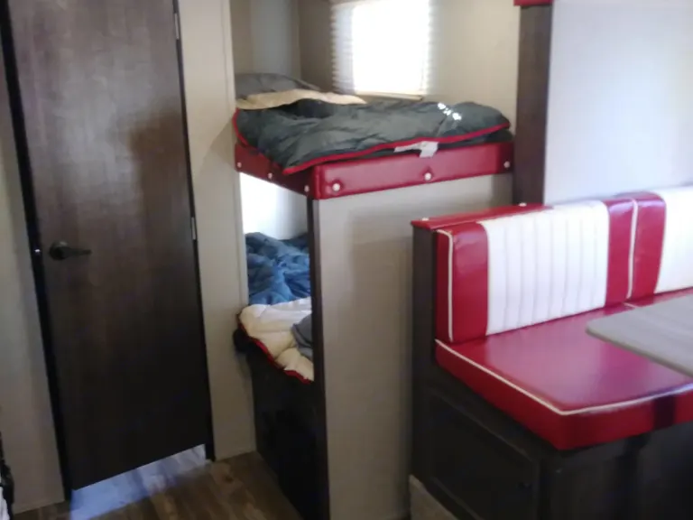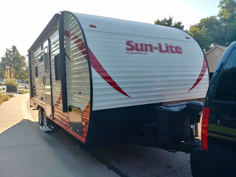 Lightweight and cozy for a couple, but more than enough room to bring the whole gang (can sleep 6-8 adults). Our Sunny D-Lite comes fully equipped for your outing. Just hitch her up, load the groceries, and you are off on your adventure! Linens (for 4), cookware, cups, plates, bowls, silverware, paper products, outdoor table and 4 camp chairs are all included in your rental. A TV & Blu-ray ($25) portable propane grill ($25), 4 bike carrier ($25), and extra chairs ($5 ea.) are available for a 1 time fee and generator and solar panel ($15/night). We want you to enjoy your experience and not worry about remembering to bring everything. This is easily towable with most midsize pickups, SUVs, and larger vehicles.Need a place to camp? We have a camping lot in the mountains that may be available as well. Please ask for details.Trailer Dry: 3900 lbs.
