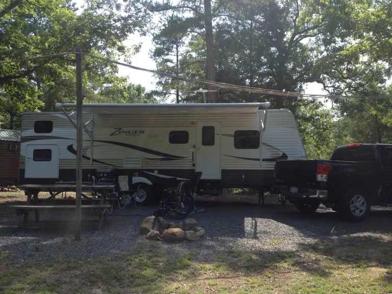 This RV is currently stored at Ocean Lakes RV Resort. This is the number 1 RV resort in the country. The RV has a bunk room in the back with 2 sets of bunkbeds. There is small bathroom with tub shower and toilet. The RV has one slide out in the kitchen living area. The TV is on a swivel so once the RV is buttoned up for the night the TV in the living area can be turned around in the Master bedroom. The master has a short queen bed with a sliding door. Outside there a large awning and outside shower near the tank outlets. This is a great RV for a family wanting to try RVing. This is will be some the best memories you make with a young family.