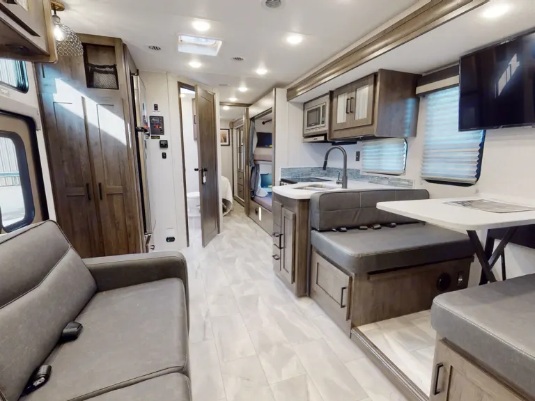 We are the only company that rents current year models year-round. Plus, ours are fully loaded meaning, they do come with multiple TV's inside. Power awnings, generators (drivable motorhomes only), full kitchen, and full bath.