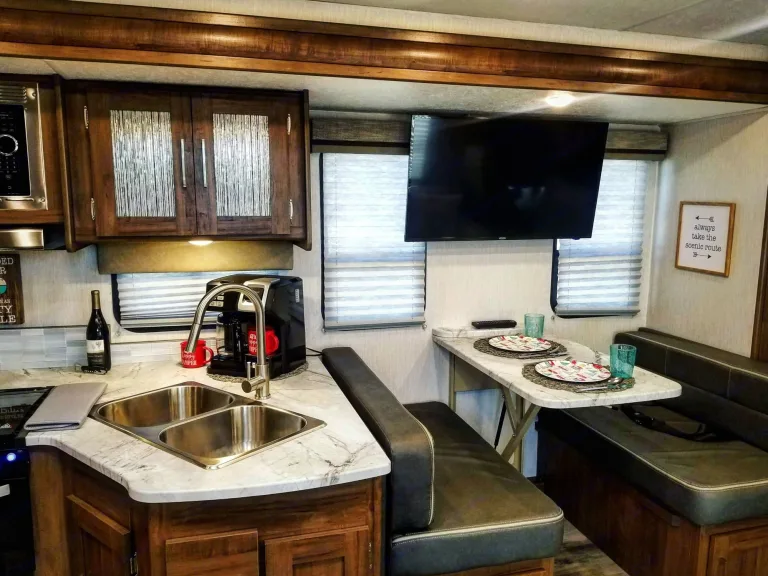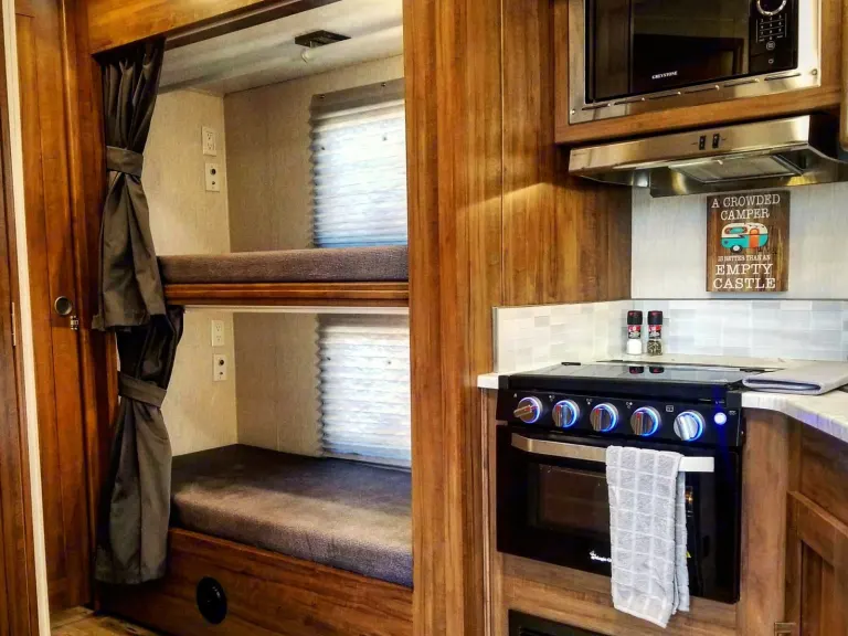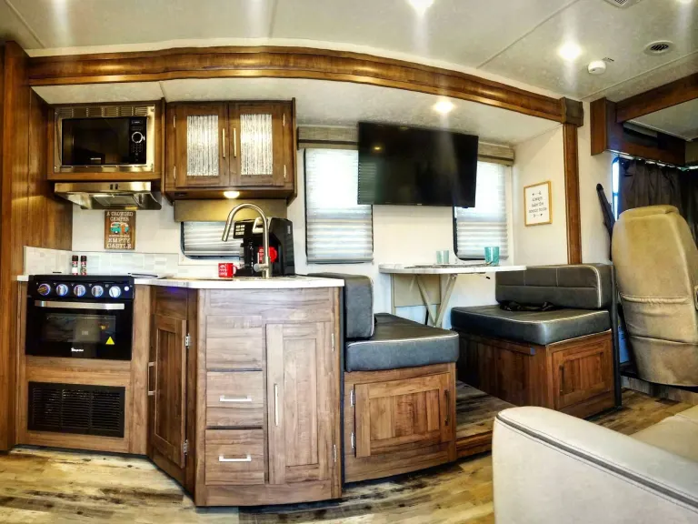 What's included4 chairs, 6 foot table, grill, mattress topper for king bedRecommendationsThere are so many beautiful state parks and beaches to visit in Florida! Head to the Florida Keys or any of our gorgeous beaches up and down both coasts for some fun in the sun. Looking for a more "magical" camping experience? Stay at Disney's Fort Wilderness and enjoy their many activities. Spend the day at one of Orlando's theme parks and head right back to your own fully stocked RV on Disney property. Where ever the road takes you, you a destined to have some great family fun in this brand new RV!