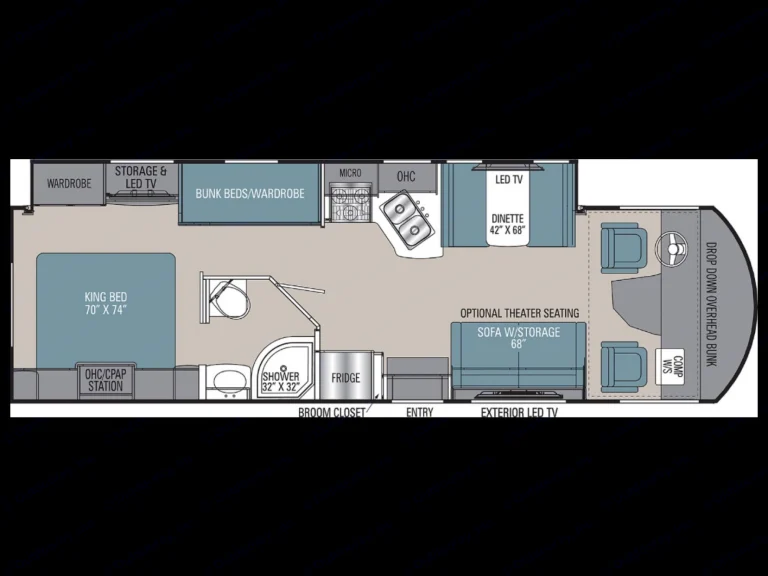 Welcome to paradise on wheels!Having been a Combat Vet in the Marine's for 4 and half years, getting out on the road touring the country I served has always been a dream.After purchasing this brand new 2020 Coachmen, I immediately I went out on my first RV adventure! I had such a great time, that when I returned I decided to share my new found love for RV'ing with others! That's when I decided to open my own RV Rental Company. or call/text at en you rent one of my rigs, you are getting one of the nicest RVs available to rent today. I pay meticulous attention to detail so you can rest assured that upon your rental, you will feel like you just rode off the show room floor!Comes with a propane grill, 5 chairs, duo coffee maker w/ single serve and carafe, and a king sized mattress topper.Check in is after 3pm and check out is before 11am. If availableThis 2020 Coachmen Pursuit with Bunkhouse sleeps 8. Feel right at home in the king sized bed located in a private bedroom. Pop on a movie in the master, while the kids sleep in the bunk beds. Have a big family or friends coming along? No worries there! There is also a twin sized bed located over the cab, a sleeper couch, and the dinette also converts to a bed. Of course, no camping trip would be complete without enjoying the great outdoors! Set up in the shade, under the large power awning while you catch the game or watch your favorite movie on the 32" outdoor tv.If you are into the details like me, here is a list of the vehicle's specs:Wheelbase: 190"Gvwr: 18000 lb.Gcwr: 23000 WR Rear: 12000 WR Front: 7000 lb.Fuel Capacity: 80 gal.Exterior Length: 31' 9"Exterior Height: 12' 0"Exterior Width: 102"Fresh Water: 50.00 ay Water: 38.00 Water: 38.00 ning Size: 20'No towing*****
