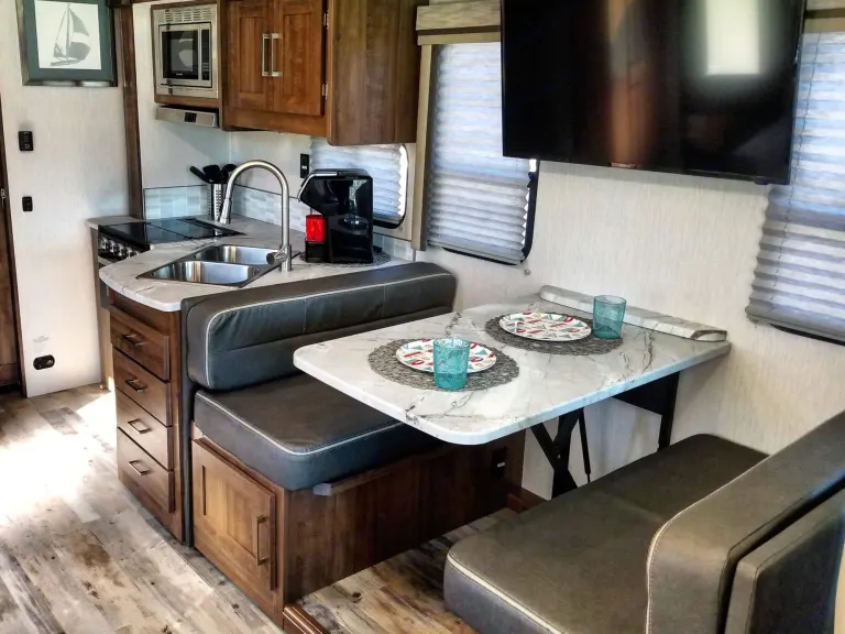 Check in is after 3 and check out is before 11.No towing*****What's includedKing bed with mattress topperRecommendationsThere are so many beautiful state parks and beaches to visit in Florida! Head to the Florida Keys or any of our gorgeous beaches up and down both coasts for some fun in the sun. Looking for a more "magical" camping experience? Stay at Disney's Fort Wilderness and enjoy their many activities. Spend the day at one of Orlando's theme parks and head right back to your own fully stocked RV on Disney property. Where ever the road takes you, you a destined to have some great family fun in this brand new RV!