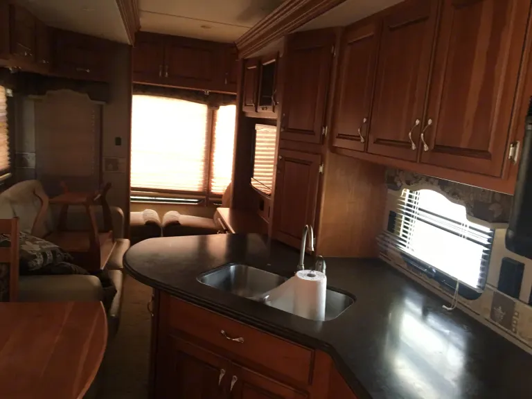 Great condition with one super slide out that gives an enormous amount of room. Queen size bed with a pillow top mattress that is very comfy. Double sided refrigerator and freezer and Corian counter tops. Electric awning and automatic leveling which makes setting up a breeze! Fully equipped with anything you might need. It definitely has all the comforts of home!