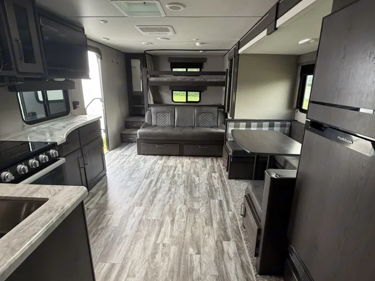 This spacious, luxury travel trailer is perfect for a family getaway or a couples trip.