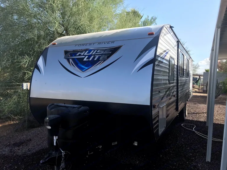 ***Newly listed***Tons of space. All the amenities you would expect. Sleeps a family of 5-6 comfortably second fridge and built in bbq. Spacious kitchen pop out as well as private master room and the bunk room conveniently placed at the opposite for added privacy. Power landing jacks and power awning. Perfect for those weekend getaways, or longer adventures you will always be ready. What's includedFresh linens, blankets, towels, kitchen is stocked with basics you will need for cooking and dining. Two camping chairs and a few board games.RecommendationsWe have enjoyed many weekends at lake pleasant with this Trailer. It’s a wonderful place to get away and hang out.Other things to notePlease return with grey and black tanks empty.