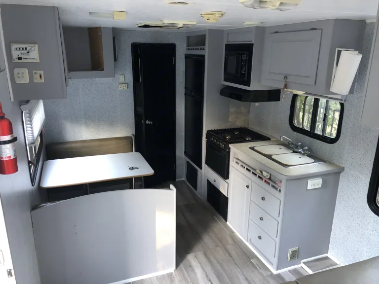 ALL linens will be immediately cleaned by us upon return with Tide Hygienic Clean and Clorox OR Lysol Laundry Sanitizer. All commonly touched surfaces will be cleaned with a bleach based cleaning agent and the bathroom will be thoroughly cleaned with antibacterial and bleach agents. Any spills resulting in a stain or any cosmetic damage should be communicated at the time of return. Any excessive or professional cleaning required to return the unit to the state it was rented in will incur an additional cleaning fee of up to $300.We will fill the water tank prior to your departure if requested, otherwise it is assumed you have a water hook up site. We’ve found there is no reason to tow the extra weight if hooking up anyway.You will be charged a $100 dumping fee if you need us to dump the black/gray tanks at the end of your rental period.Dealer provided specifications for reference- we will confirm all weights and tow capabilities with you-