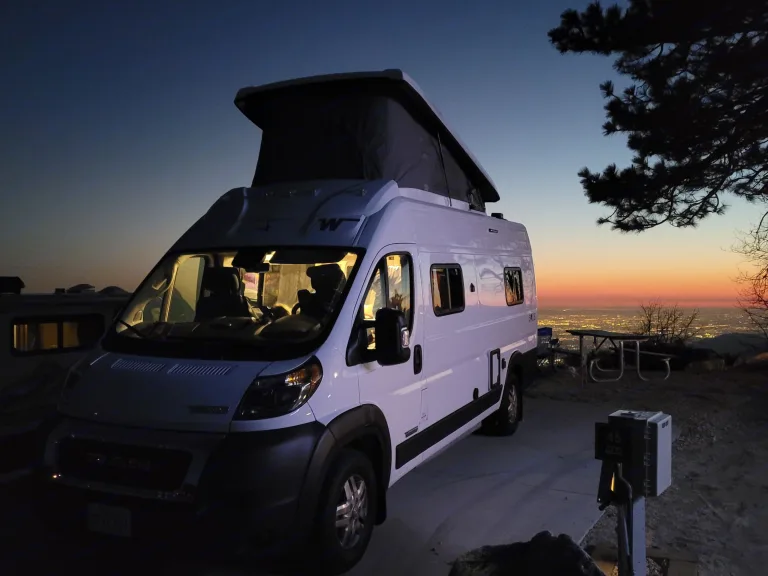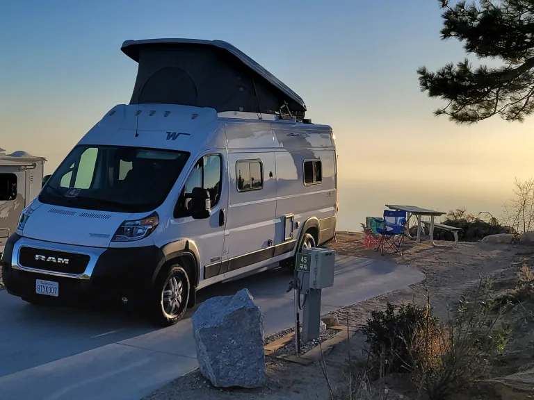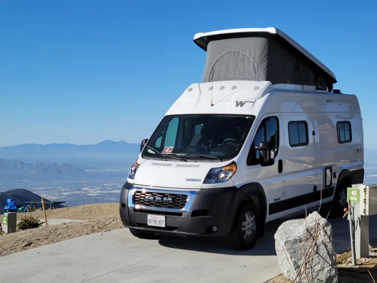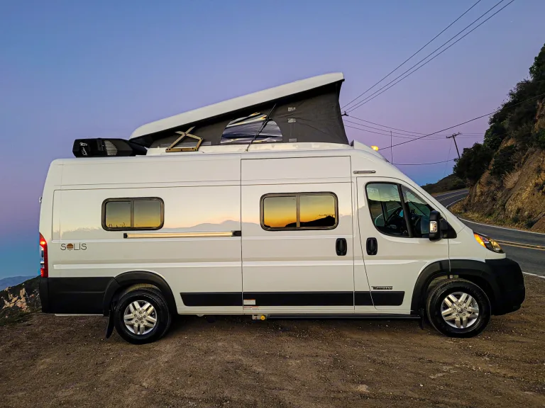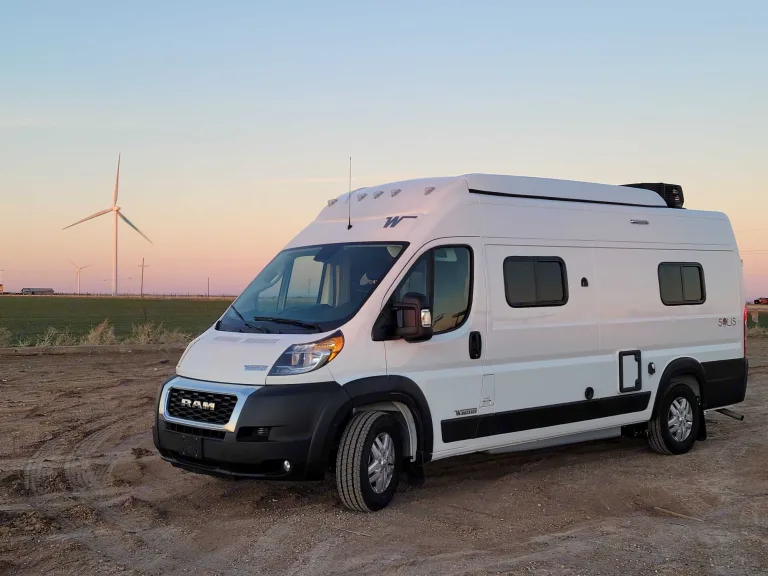 “Tardis” is a new 2021 Winnebago Solis 59px camper van. This van is easy to drive, sleeps four people, and is packed with great features like an air conditioner, heater, stovetop, shower, generator, solar panel, indoor/outdoor showers, safety drive features, swivel chairs, and more!***To watch me do a full walkthrough of the van, check out the "What's Included" section below.This van has a pop-top bed as well as a full murphy bed in the back, so it can comfortably sleep four people, and more if you don’t mind getting close!It has a propane heater, water heater, and stove as well as a generator which can run the air conditioner and 110v outlets.4 seatbelts in the vehicle. Two adults can sit in the front and two adults in the back or the back seats can accommodate two car seats.Running water, filled with filtered water before your trip.It has a bathroom with a shower and two outdoor shower locations.The back doors can connect with a rod, for a private outdoor shower, or awning shade.Other features:-Able to blackout all windows