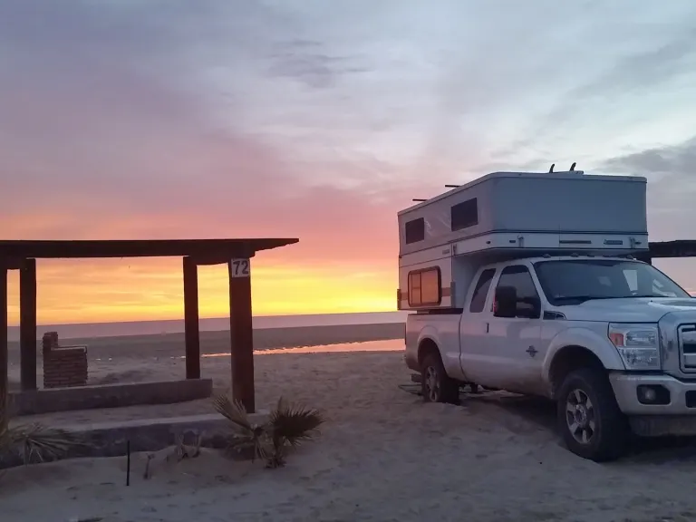 The Truck: 2015 Ford F-350 XLT: 6.2L V8 Gasoline Engine w/ low miles, extended cab and room for 4 (2 adults + 2 (small) kids). Rear doors are not full size. This is a reliable low mileage 4x4 loaded with options and automatic transmission making this full-size truck super easy to drive.The Camper is light, rugged and constructed of high quality materials. Together, the truck and camper are an amazing adventure-mobile. The dinette seating and table is large enough for 4. The upper bed is a king size slide-out and the dinette turns into a second bed approximately the size of a twin XL. Camper pops up/down in minutes and is easy and intuitive to use.Everything you need including linens, hot and cold running water (26 gallons – 98 liters), sink, 2 burner stove, furnace, refrigerator, outside shower, LED interior and exterior lighting, 8’ side awning, storage and on-board batteries and solar. It can also be plugged in to 110V power at a campground. Thermostat controlled propane heater keeps you warm and there are two roof vent fans that keep a breeze going if it's hot. Fridge and freezer for your food. Sink and stove for preparing your meals. USB and 12 volt power ports for charging your mobile devices. It is low profile while driving (saves fuel and lowers center of gravity) and the roof pops up once parked.Included are fresh linens and comforter, cooking equipment, maps, lantern, kitchen equipment for 4, blue tooth stereo, maps, full propane and water tanks, 2 Burner Propane Outdoor Stove, 2 Camp Chairs, 1 Camp Table, owners manuals.We are located at the Four Wheel Camper manufacturing plant in Woodland CA just minutes away from the Sacramento airport and there is secure parking for your vehicle!Pets considered on a case by case basis with an extra fee. Absolutely no smokers are allowed in the truck or camper. Absolutely no trips to Burning MAN allowed.Drop-OFF/Pick-UP times: Monday - Saturday at 12 noon. $50 xtra charge for Sunday pick up/drop off.