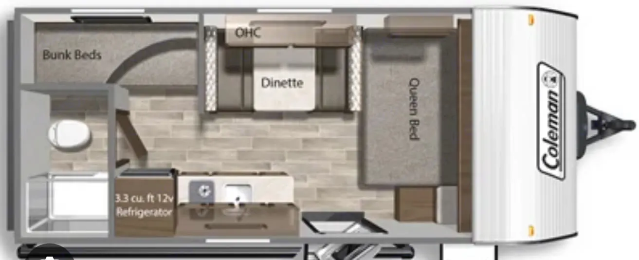 Adventure & Comfort in Our 2021 Coleman Lantern 17B!Ready to make memories on the open road? Our 22ft Coleman Lantern 17B is the perfect mix of comfort, style, and adventure — ideal for family getaways, couple retreats, or weekend escapes.Inside, you’ll find a queen bed, two cozy bunks, and a convertible dinette that sleeps up to 5 guests. The interior feels warm and welcoming, with modern finishes, soft lighting, and thoughtful details that make it feel like home.The kitchen comes fully equipped with a two-burner stove, microwave, sink, and mini fridge — perfect for morning pancakes or easy dinners after a long day outdoors. A full bathroom with shower and toilet, climate control, and a power awning add all the comfort you need for your next adventure.Easy to tow, clean, and cozy — this trailer makes it simple to turn every trip into something unforgettable.- Highlights: