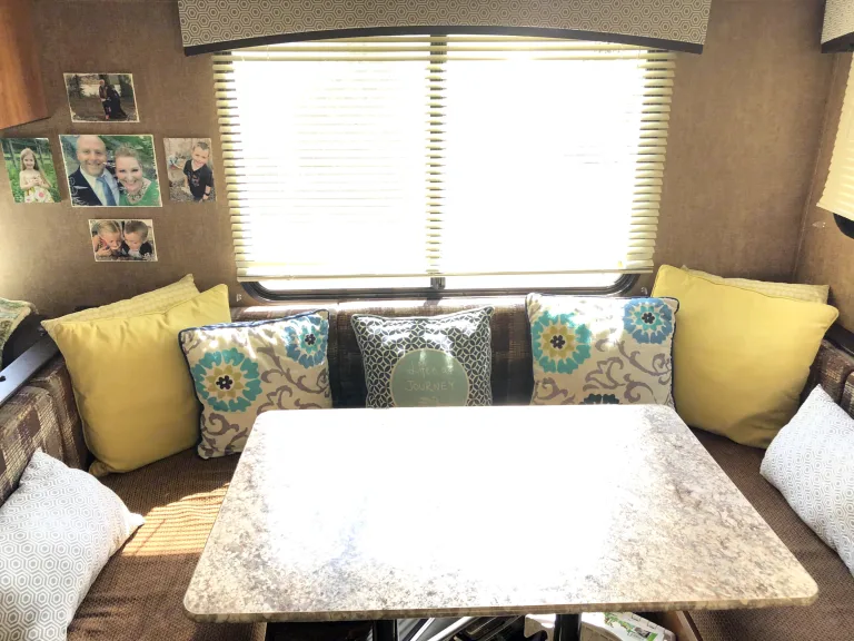 Fantastic travel trailer for families. Includes master bedroom with queen bed, double bed bunks, full-size pull out couch and U-shaped dinette which also converts to a full-size bed. Beautifully decorated “glamper” for getaways into the wild but with all the comfort of home!We limit our reservations to delivery/setup only. Please inquire for fees to your location.