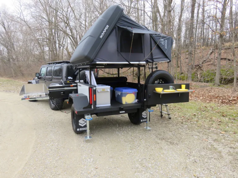 Enjoy your offgrid travels with the 2022 Schutt XV3 - iKamper Roof Top Tent , 22G water, pull out galley with stove top, on demand hot water and sink. iKamper RTT equipped with mattress, windows with awnings and skylight. Propane included for stove/hot water. 12V system with area LEDs, interior lights in trailer bed. Choose an amenity package for your full turnkey experience with curated kitchen tools, cooking pots and pans and cutlery and flatwear/cups/mugs.Every rental includes complimentary coffee set up for two for your first day!Lots of storage in trailer with folding hard cover, full size spare tire, exterior shower, under trailer water storage, available equipment packages to suit your travels!What's includedFull Propane, full water, basic equipment (shovel, wash basin, coffee setup)RecommendationsConsider an amenity package selected to support the entire camping site experience.