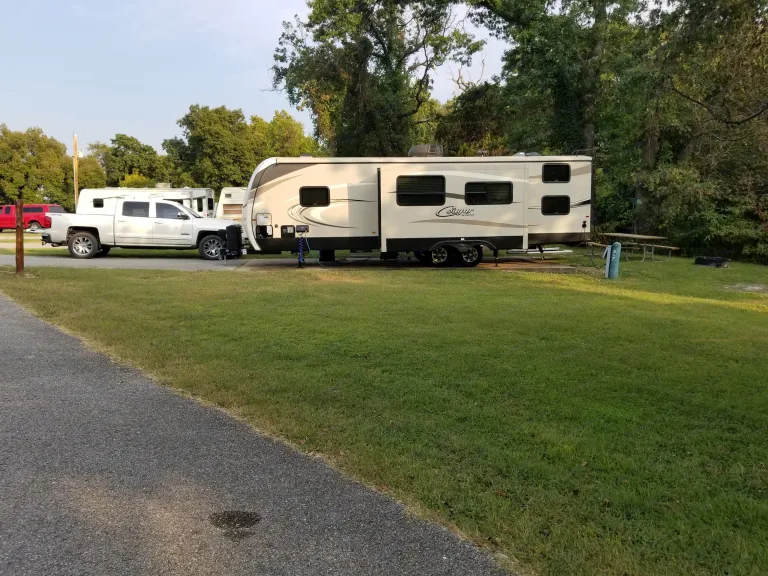 Newer 34 ft Travel Trailer. It has outside kitchen and shower. Automatic leveling system. Electric Slide, Electric Awning. Will deliver, set up, pick up within 30 mils for $125.What's includedPots, pans, utensils, cups, plates ,paper towels, towels, wash cloths, dish towels, dish cloths, sheets on primary beds, coffee pot and coffee, all toilet tissue, cleaners,a few cold water to get you started and settled in, can provide most other items at request just ask.