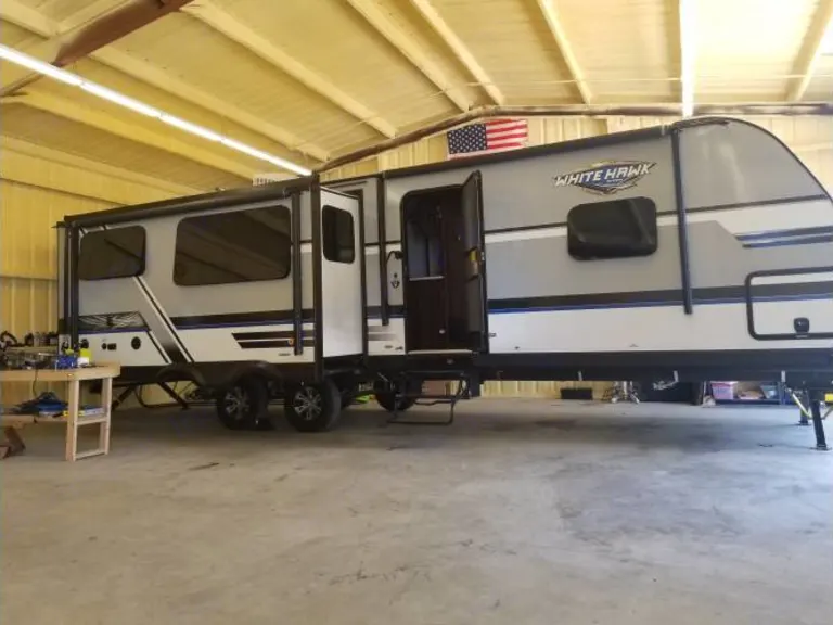 Sleeps 6 comfortably, up to 8 if you get a little cozy! Everything you need to enjoy the great outdoors with all the amenities of the great indoors. This is a beautiful RV we are very proud to share with like minded campers! Double opposing slideouts give you a Huge living space and room to relax. Privacy shades on all windows, screen door and more! On the inside you will find a 2 TV's, DVD player and bluetooth stereo, AC / heat, Fridge (powered by electric or propane), propane stove and oven as well as a microwave. A visual / heat option fireplace and 2 queen size beds (master bed and jackknife sofa) Dinette transforms into a bed as well, 1 queen extra tall (super comfortable) blow up mattress.