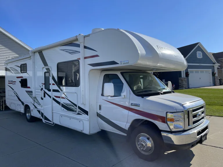 Take the kids or grandkids on new adventures in this 32ft Class C motorhome from Thor. This Freedom Elite comes with bunk beds on a slide with the lower bunk easily converting into a dinette. An above-cab bunk sleeps two more, and so does the jack-knife sofa. Converting the main dinette into a bed brings the total sleeping accommodations for this RV to 10 people. This Unit IS Perfect FOR Large Families