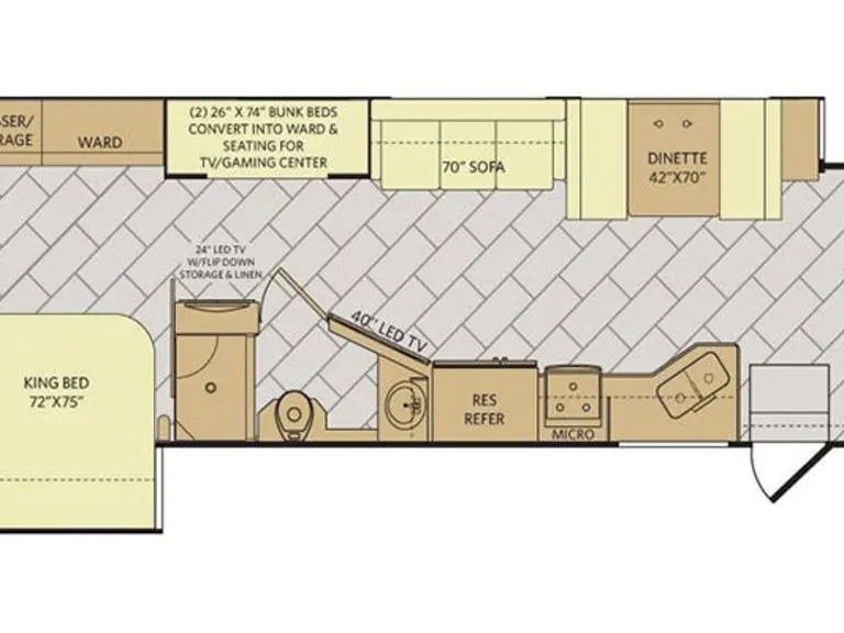 Our coach is ready for your family. With 2 queen beds, a bunk bed and a couch and dinette that become beds, you have more than enough sleeping spots. This Fleetwood also comes with 2 full baths that will make mornings much more enjoyable. The kitchen comes with a double sink, full size fridge with ice maker, gas range and stove. The outside TV and awning make it great for outdoor grilling and activities. With plenty of storage inside and outside, you can bring plenty of food and adventure gear. The furnace water heater will give you enough for hot showers. The coach is ready to to make your family very happy. Open to pets but must be small and no shedding pets.What's includedWe have a GSP that uses the RVs height and width so it will route accordingly.
