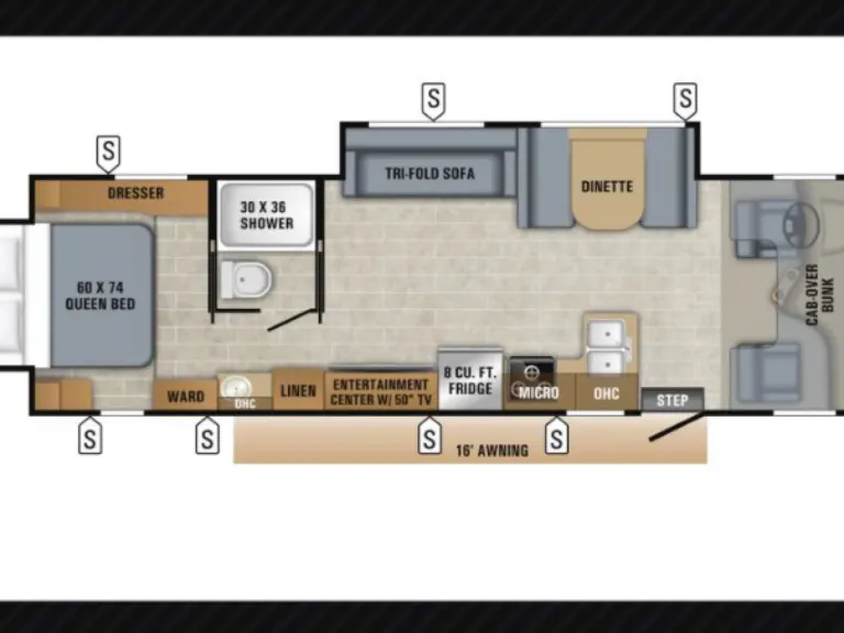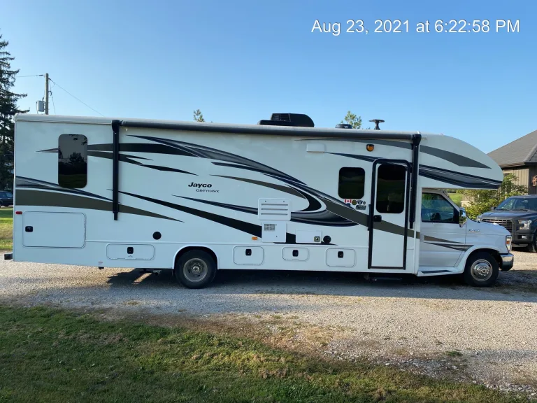 Let your camping adventures begin in this 2019 Greyhawk 30Z by Jayco.! This unit features a queen size bunk over the front cab, theatre seats, four seat dinette, 50” TV, queen size bed in master bedroom, lots of storage inside and outside the unit. Portable BBQ and stove included as well as cutlery, cooking utensils, pots and pans, mugs, plates, bowls, plastic wine glasses, toaster, electric skillet, Keurig coffee maker, clothes drying rack and outdoor mat.