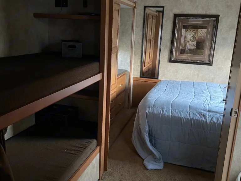 Great for family trips all while wanting the comfort of a Class A! Hard to find bunkhouse for the kids! This is the perfect family motorhome to explore what the beautiful outdoors has to offer. Has a TV in the front cab and master bedroom has its own TV. The large bathroom has plenty of room for you to get ready for your adventurous day.To keep your electronics charged, there are plenty of outlets throughout the motorhome along with 12v.There is a strict NO Smoking policy on this rig.