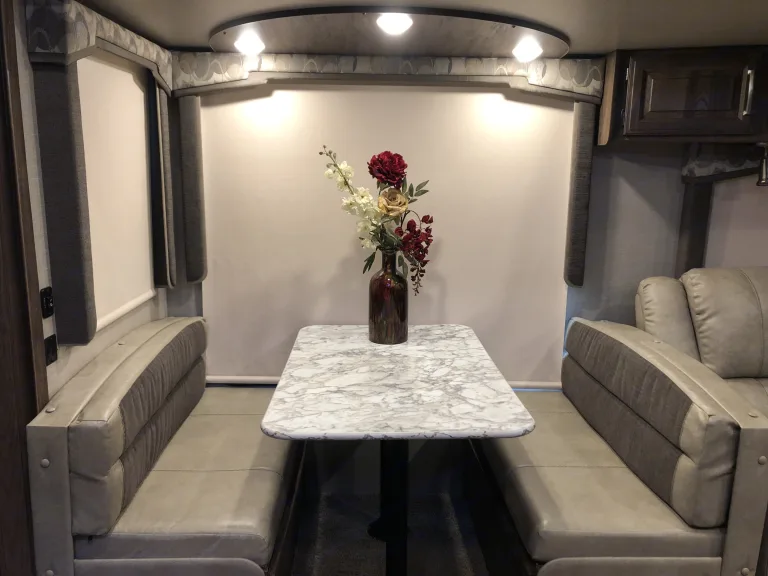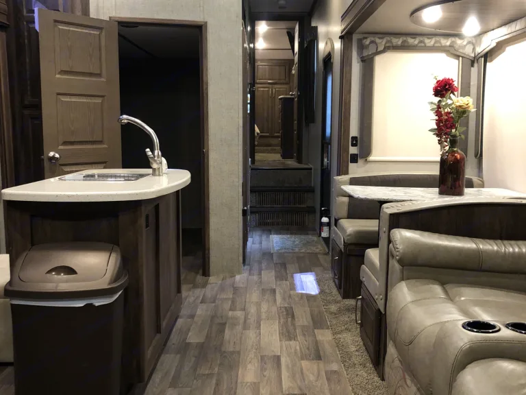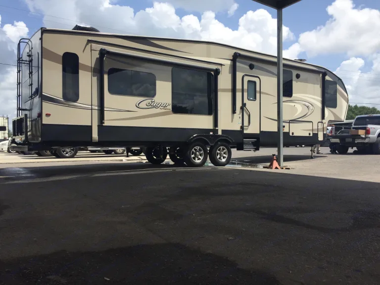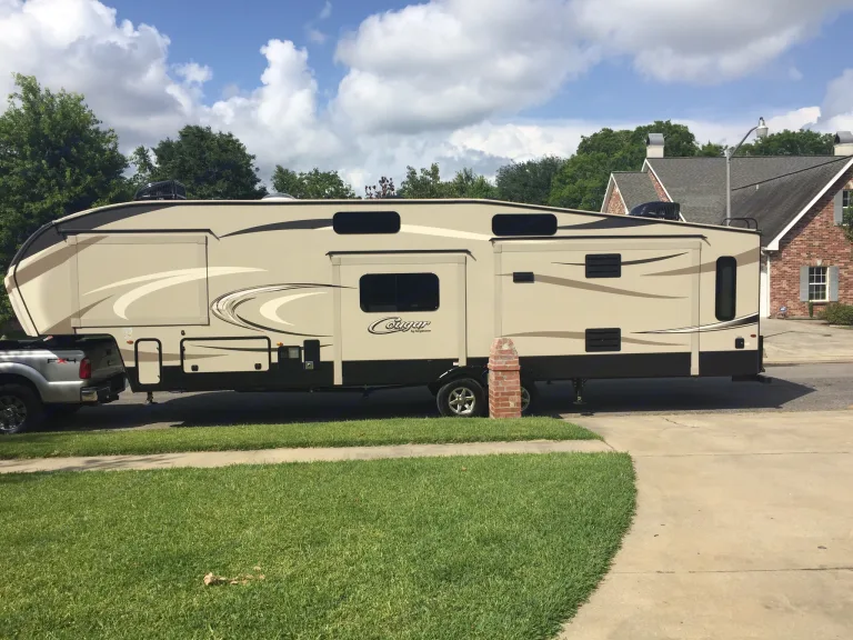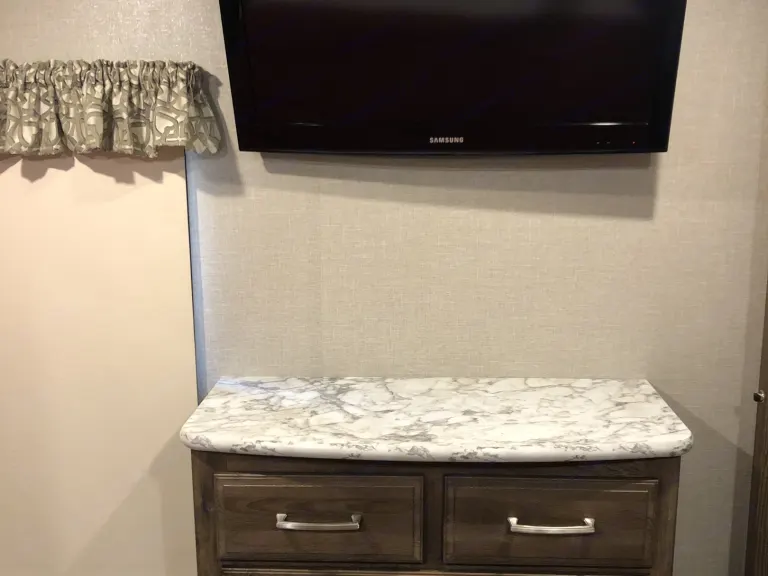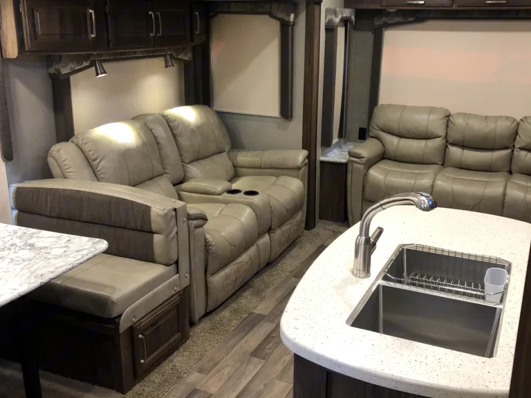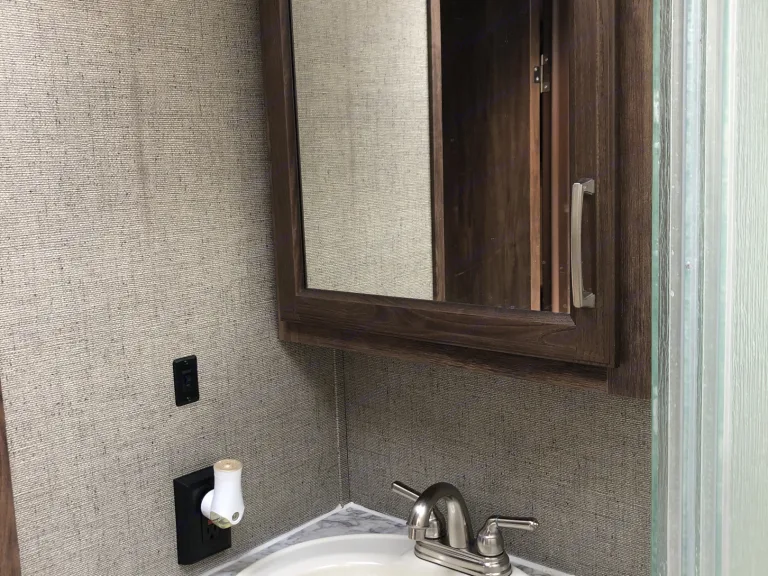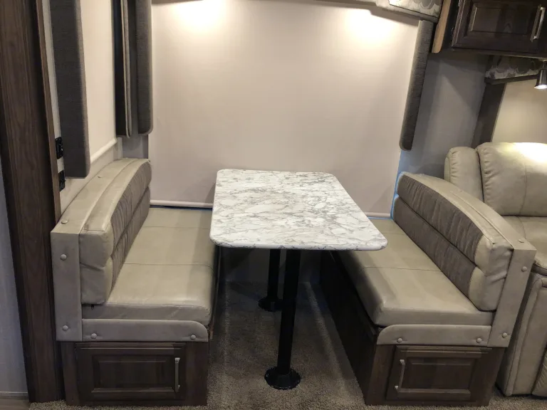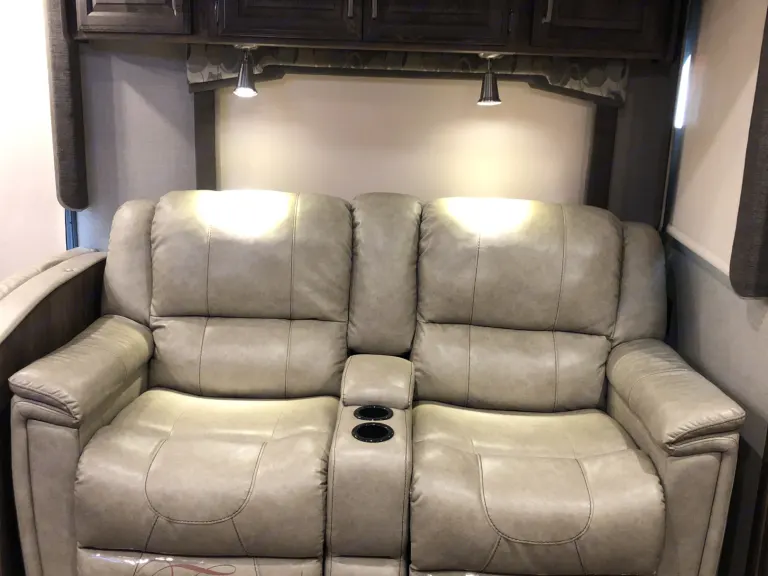 This Cougar has a beautiful cashmere leather queen sleeper sofa and 2 recliners in the living room for you to lounge in front of the functional fireplace and flat screen TV. It has a full size sleeper sofa in the mid bunk room that includes plenty of storage and a flat screen TV. It also has a loft with a TV that sleeps 2, it’s perfect for children. The booth dinette converts to sleeping space for 1-2 as well. The master bedroom has a queen bed with a large mirrored closet with a charging station. It has a dresser and extra storage and of course a flat screen TV. The bathroom has a large shower, and vanity with upper and lower storage plus designated space for linens.What's includedThe RV comes with the following for your convenience.