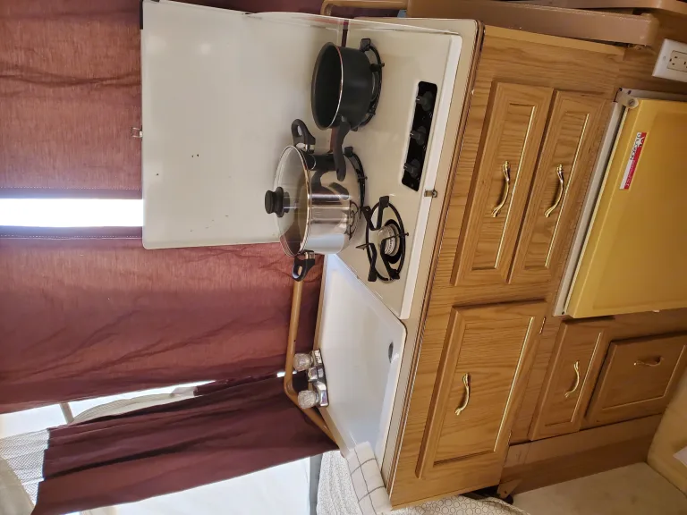 Sink, 3 burner stove + burner stove outside , heater, hot water and outside shower will give you and your family a comfortable and cozy stay.