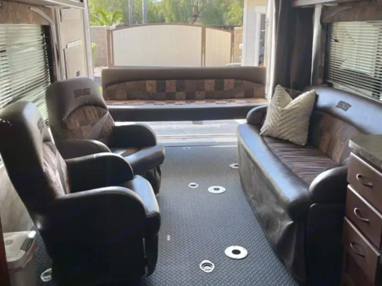 2012 Pacific Coachworks Toy Hauler with queen size front sleeper. Rig sleeps 8 comfortably, queen up front, (2) electric beds come down in the rear and folding couch into a twin. Dual AC and onboard generator. 160 gallon fresh water tank, 50/50 grey/black. Also included are use of ice chest, ez up, small weber grill, and folding tables. Linens not included.