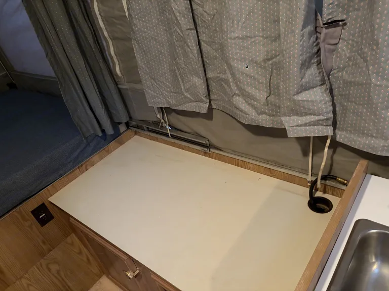 Looking for the basics here it is roomy tent camper with plenty of shelter from the weather and still enjoy the outdoors with access to the essentials bathroom, shower, hot water, refrigerator, kitchen sink, seating yet light enough to tow behind a small suv or light pickup