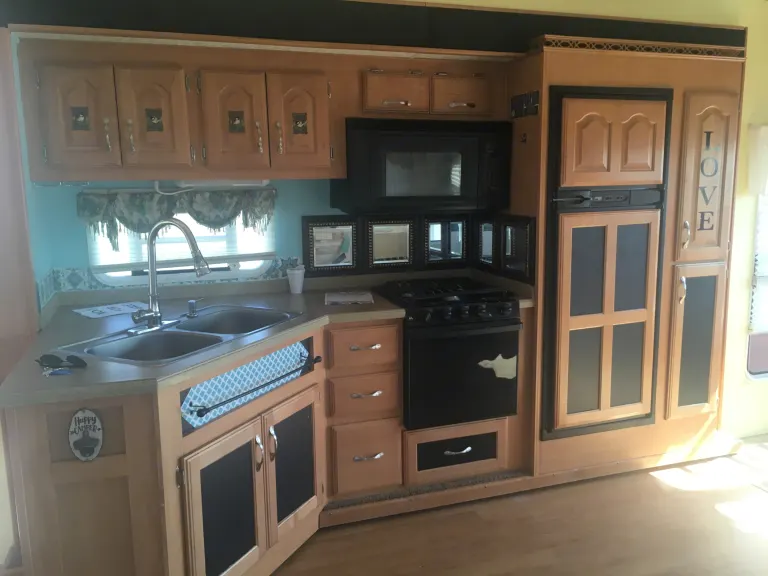 Gorgeous, totally redone, turn-key and road ready for winter adventure or relaxation In warner weather! This roomy fifth wheel has been extensively upgraded and features new vinyl plank flooring, white faux leather furniture, custom dining, well equipped and renovated kitchen, bath and a dreamy bedroom suite (with king bed!)A/C, 3 slide-outs, great room concept luxury living on a budget... wherever you choose to wander. Gas grill, chic chairs, sun awnings; everything you’ll need for outdoor living, eating and entertaining.Just waiting for you to experience a fun-filled, adventurous Baby-boomer way of escaping winter!