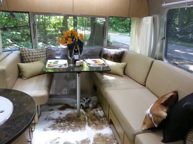 Comfort 15,000 BTU central fully ducted through out A/C, 25,000 BTU Furnace, Queen bed in master, Sleeps 6 with lounge area proper configuration, gas stove, microwave, two LED TV's, gas/electric water heater, gas/electric 7 cu.ft. refrigerator freezer, walk in shower, separate ceramic toilet and sink bathroom, full awning on entry side, and window awnings on rear and side windows, electric front jack, 39 gallon fresh water tank, 36 gallon gray, 39 gallon black tank, two 30lbs LP tanks, two 12V deep cycle batteries, and a 30amp shore line plug in ready. Even at 27ft. long the aluminum, low center of gravity Airstream trailer only weighs 5,868 lbs dry. Super easy to tow, easy to place at site, and superior fuel economy when towed. Did I mention the high quality build of an Airstream?