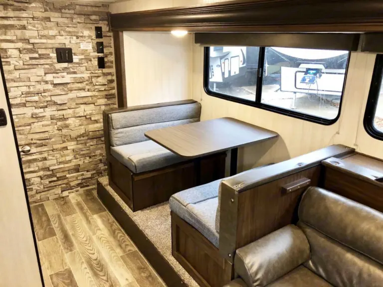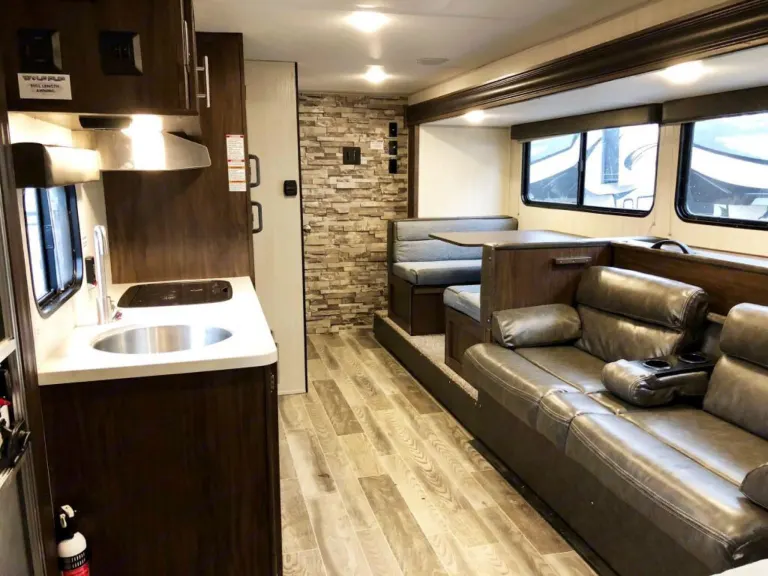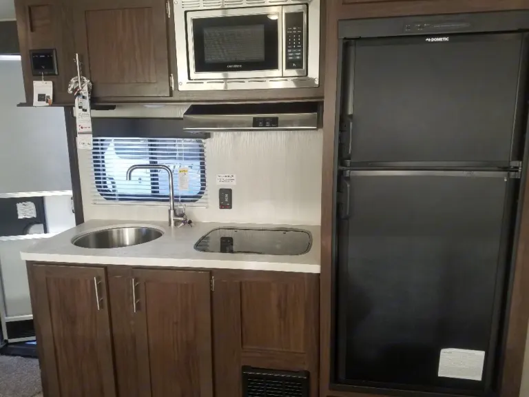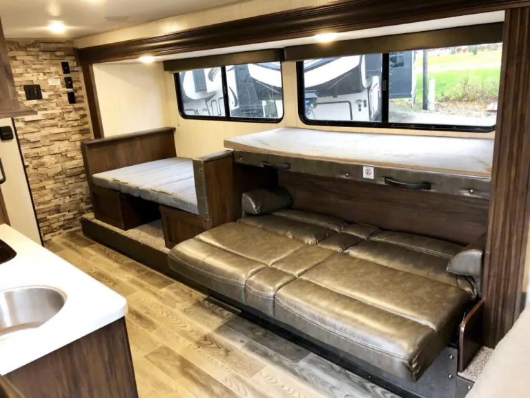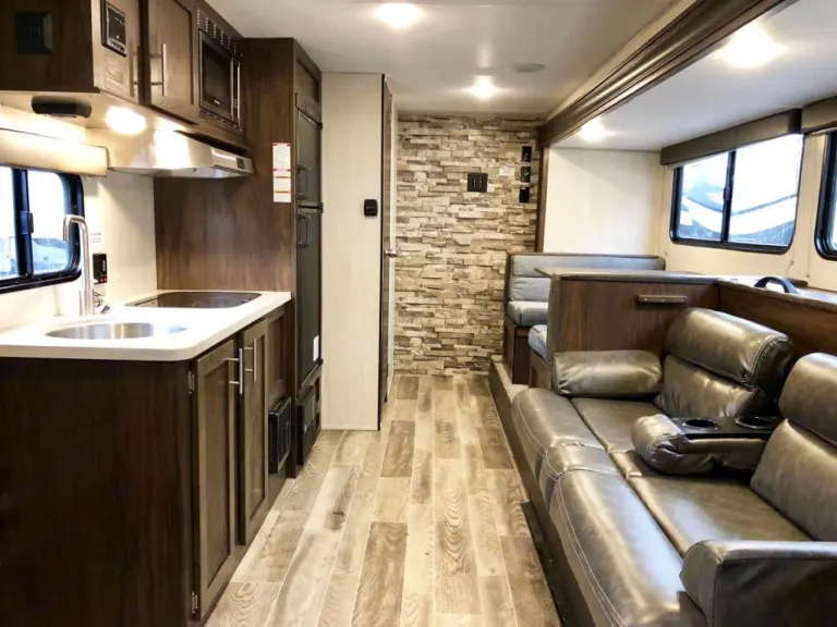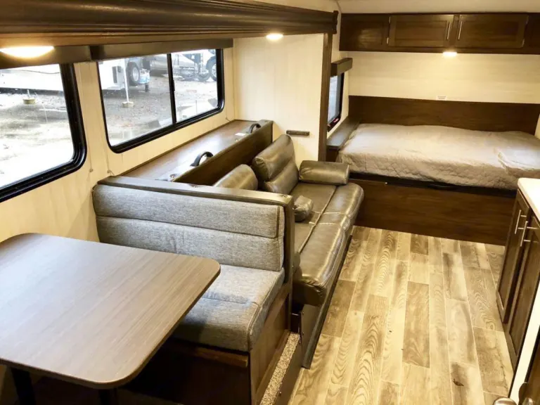 Our little bunkhouse will be perfect for you and your family to take and enjoy the outdoors. On a single axel frame, this small camper packs a Huge footprint by having the largest slide out available for a trailer this size. The best part about it is you get tons of space with a tow weight of a smaller camper. Many mid size SUV’s and light weight trucks can handle this unit. The total sleeping capacity is 7 though we recommend no more than 5 to remain comfortable. There is a queen size bed, dinette conversion to full size equivalent, sofa conversion to full size eqivelent and a twin size bunk for kids <100lbs. With a full fridge that runs on both propane and electric, there will be plenty of space for your groups food and beverage. Bathroom accommodations offer a stand up shower and toilet, 23 gallon gray and 23 gallon black holding tanks.Check out our great add-ons!Camper is expected to be returned in same condition as it left from pickup. $95 cleaning fee may apply if unit is not cleaned well prior to return. Already know you don’t have time to clean the unit? Go ahead and choose the cleaning add on for a hassle free return.Some of, to all of the security deposit may be held if there is evidence of smoking/vaping/juuling in this unit.