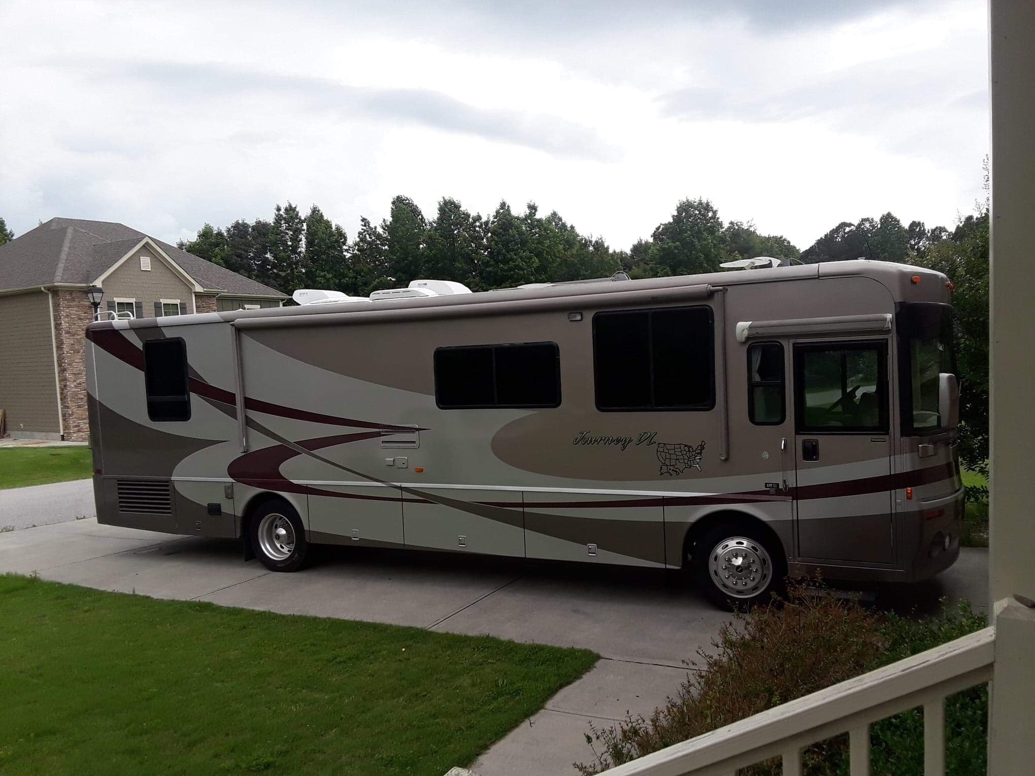 36 foot Winnebago with leather furniture and hardwood floors. Master bedroom has a Sleep Number bed. Dinning room table turns into Twin bed. Living room bed folds down to a queen. Full bathroom with shower and water closet. Composting toilet means no need for water or full hook ups. New hot water heater. Low miles. Diesel engine. Good amount of storage. TVs in the bedroom and living room. Use app RV Parky to find 50 amp RV parks.