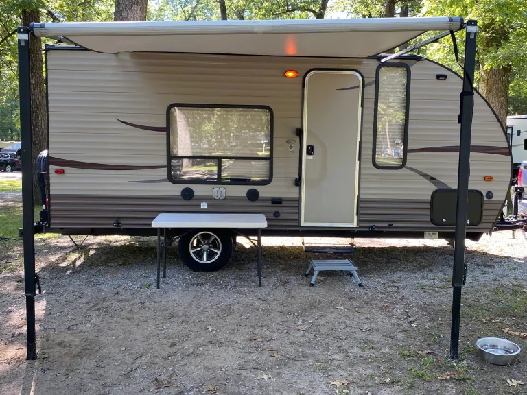 My wife and I grew up tent camping and have loved taking our dogs to explore the beautiful trails at different Indiana State Parks. We recently purchased this 2017 Wolf Pup due to its great condition and minimal amount of times it has been used.We provide all the kitchen utensils you will need for cooking and eating. The refrigerator and freezer are great for food and a few beverages, but we do recommend bringing a cooler for your drinks.The camper is equipped with a propane-based heater and electric air conditioner so it can be used throughout most of the year. It has a comfortable queen bed and a table that converts into a full bed that is perfect for your kids or 4-legged friend! The bathroom is equipped with a shower, toilet, and vanity.You can pick-up local channels on the tv through the powered antenna or stream from your favorite devices through the Hdmi port. Music can be played both inside and outside of the camper. The stereo includes input jacks, am/fm radio, cd player, and Bluetooth connections.We’ve found this camper to be our little slice of heaven and know you will too!